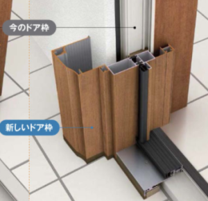 古いドア枠を壊さず、新しいドア枠で包むように工事する方法です。