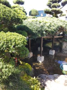 池の中に支えを建てる必要があったのでどうしようかと考えた結果、