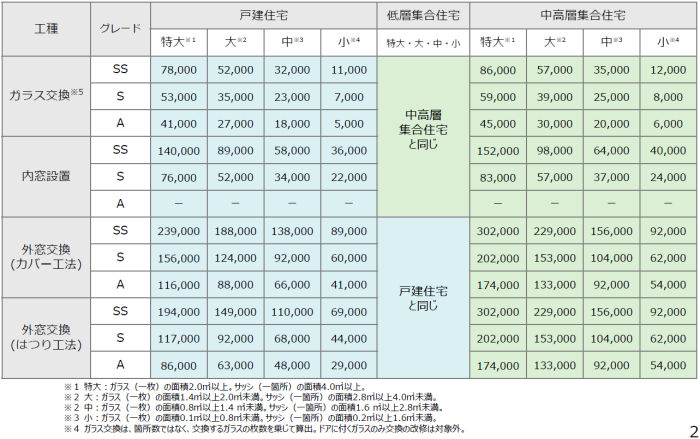 いわゆる9尺(2m70cm)の掃出し窓になると今までより補助額があがる