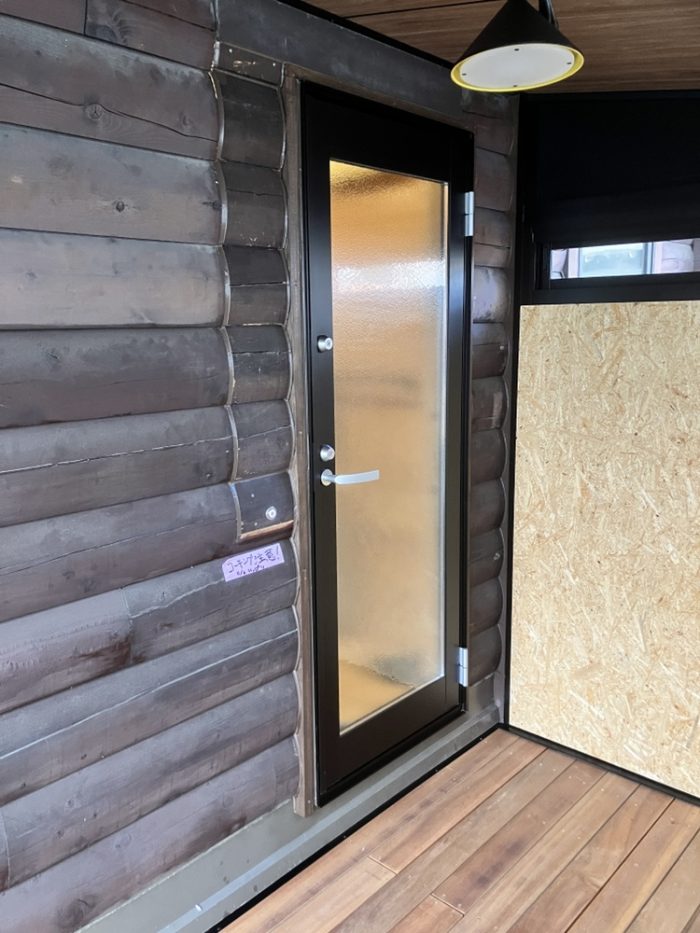 ログハウスの壁をうちぬいてドアをつける!