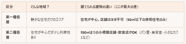 『第一種低層住居専用地域』または『第二種低層住居専用地域』に建てることが可能な建物